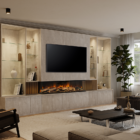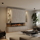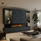 The Kingston modular unit can be completely personalised to your preference. From a simple chimney breast and fire base, to a full wall with glass shelving and additional base units, the Kingston is one of the only pre-fabricated, fully customisable feature walls on the market today.